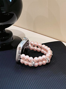 リボンダイヤモンドパールブレスレット s10 apple iwatch9876 時計 Huawei gt5 時計ストラップ Xiaomi 89 に適しています