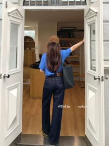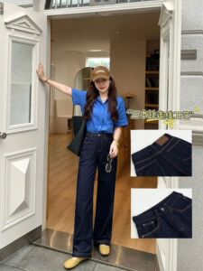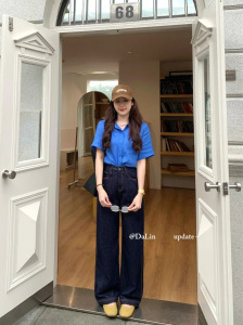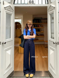 DUOXINIU/多喜牛/DaLin三本針夏の上で新しい狭い版のワイドパンツの高腰のジーパンは高く現れます。