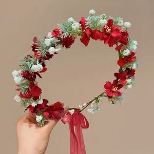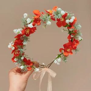 花輪ヘアバンド、プリンセス風、森ガール風、フラワーガールドレス、ウェディングヘアフラワー、女の子用ヘアアクセサリー、女児用ヘアアクセサリー、2025年新作