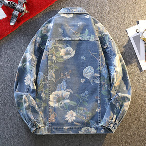 202 外国貿易ドロップシッピングファッションカジュアルトレンドワイド春秋トレンドメンズジャカード香港スタイルデニムジャケット