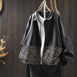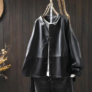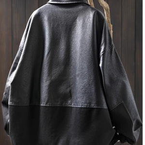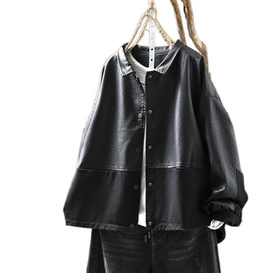 黒のレザージャケット女性のルーズ 2025 春の新クールスタイルショートスプライシング pu レザージャケット