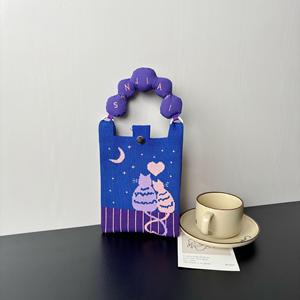 ハイエンドの新しい携帯電話バッグ、かわいい漫画のニットバッグ、ニッチなデザイン、トレンディなシングルショルダークロスボディショルダーバッグ