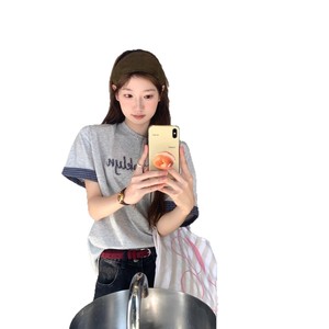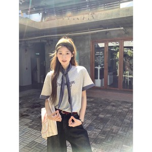 韓国スタイルのレイジースタイル刺繍文字純綿半袖Tシャツ女性用2025年夏新作イン超人気年齢軽減学生トップス
