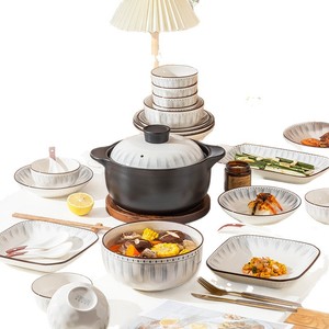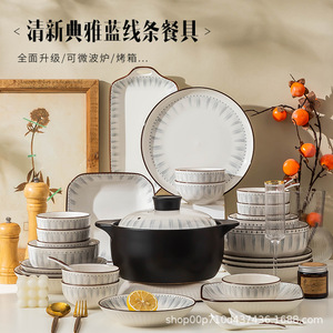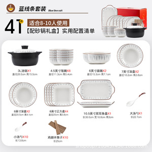 【健康釉下彩】蓝线八人食41件套{明火砂锅配置}