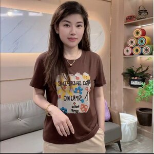 ドロップシッピングネットセレブ人気2025夏新作ファッショナブルなインクジェットプリント年齢軽減ラウンドネック半袖Tシャツ