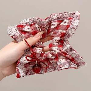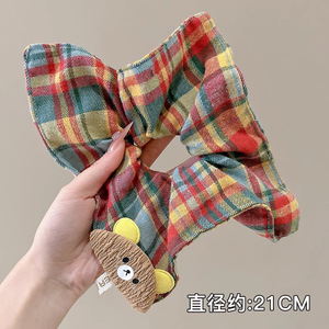 1#赤いチェック柄の四角いスカーフヘアゴム、約21×22cm