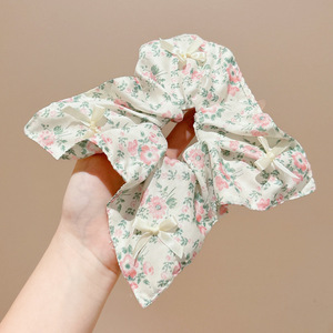 3#ピンクの花柄スクエアヘアゴム、約21×22cm