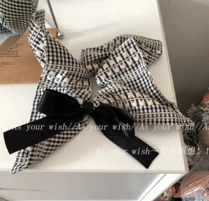 2 # 黒と白のドライバードチェック柄リボンスカーフ約24*24cm