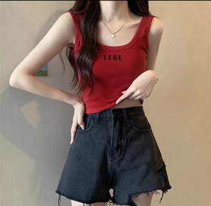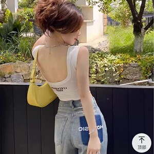 文字入り一体型固定胸パッド、女性用キャミソール、U字型美背中、夏用快適ボトム下着