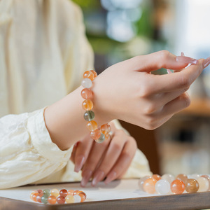 [ブティック新着] ナチュラルピンクウサギの毛皮、ホワイトカラーのウサギの毛皮、クリスタルグリーンのウサギの毛皮のブレスレット、マカロンカラーのラッキーブレスレット