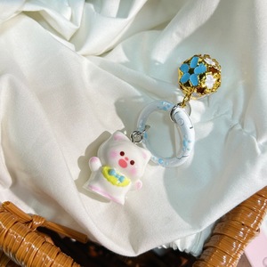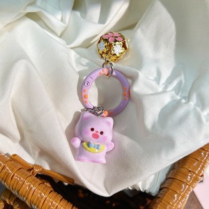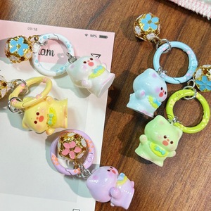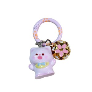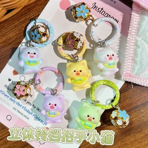 立体的な挨拶ぽっちゃり猫キーホルダーカラフルな花の鐘かわいい甘いスクールバッグ女の子キーホルダー