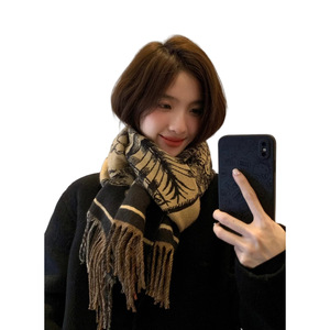 厚みのある戦馬チェック柄両面模造カシミヤスカーフ女性のための秋と冬の新しいスタイルのタッセル暖かいアウターショールスカーフ