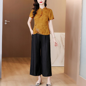 Xiangyunsha ツーピーススーツ女性のための 2025 新しい中年母親桑シルク亀柄スーツ若々しい気質