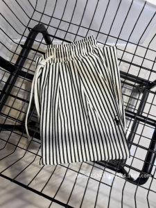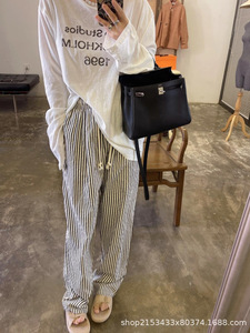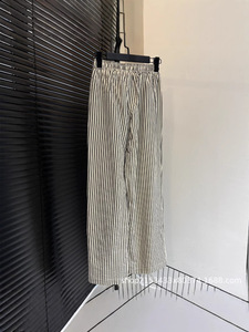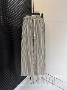RL.ウォリアー刺繍レイジーストライプパンツレディース弾性ウエスト巾着テクスチャーストライプスリミングカジュアルパンツ
