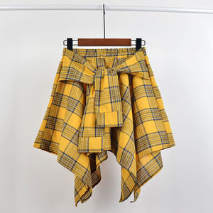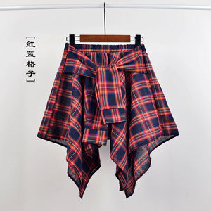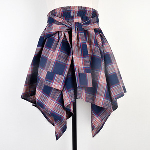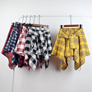 チェック柄スカート夏不規則な弾性ウエストシャツスタイルダンススカート四隅スカート学生スカート女性のショートスカートトレンディ