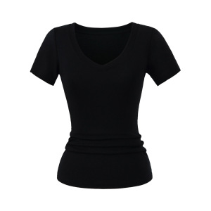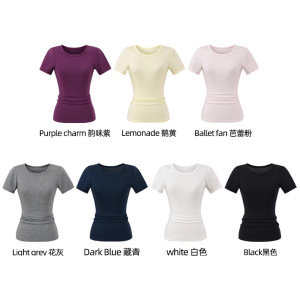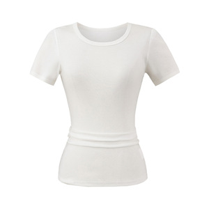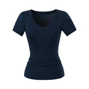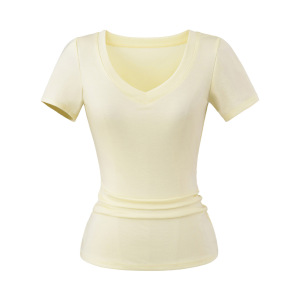 テンセル速乾ソフトVネック半袖Tシャツカセットタイト弾性痩身ラウンドネックトップ女性用夏ヨーロッパとアメリカのバッチ