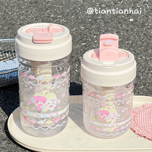 インかわいい高見えウォーターカップストロー女の子プラスチックカップシンプルな学生新しい高温耐性ティーセパレーター付き