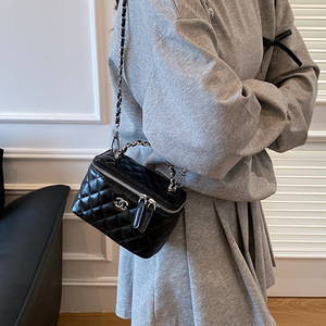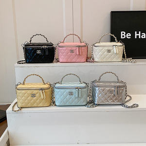 女性用ボックスバッグ、無地、ファッショナブル、ハイエンド、小さな香りの菱形チェーンバッグ、シングルショルダークロスボディバッグ、小さなスクエアバッグ