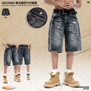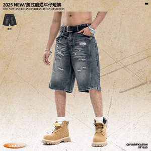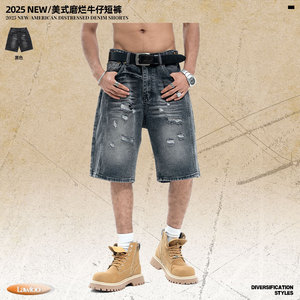 ローローローのアメリカのファッションブランドのデニムのショートパンツの男性の夏の穴の毛の縁を破って古い水洗いをします。