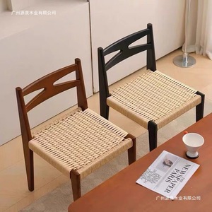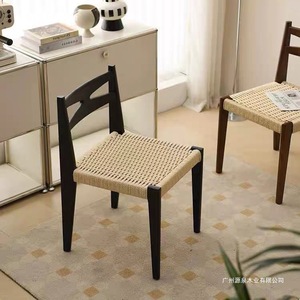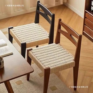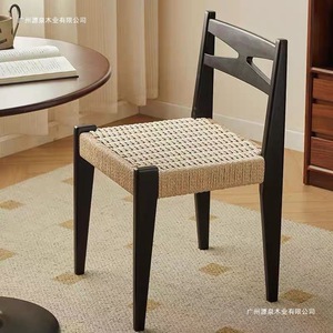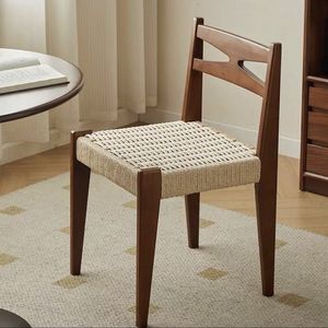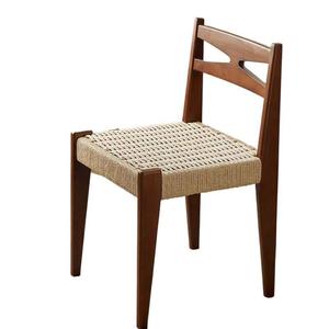 ミニマリストクリームスタイルデザイナーレトロ無垢材籐椅子ロープ織りシングルバックダイニングチェアわびさびスタイル家具