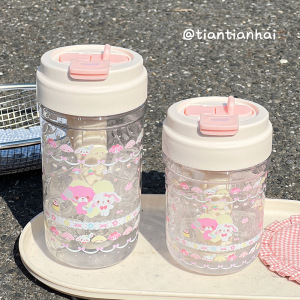 見た目の良い女子学生向けのオリジナルの人気プラスチックカップ、キャンパスポータブルでかわいいカップ、お茶と水の分離ストローカップ
