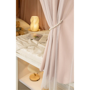F【学生寮ベッドカーテン】綿麻の質感が厚く、物理的な遮光通気性のある寝室の下に女性ベッドが敷かれているC