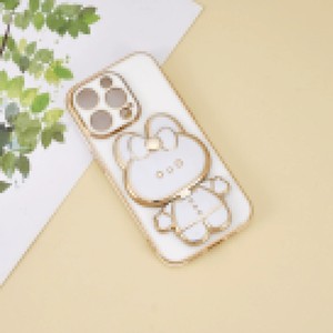 ウサギの携帯電話ホルダーバックステッカーミラー付き回転可能かわいい電気メッキ KT ウサギ蝶ウサギ少女漫画携帯電話ケース