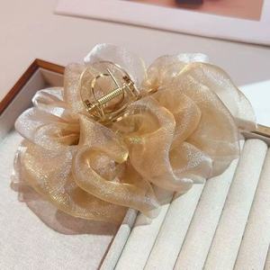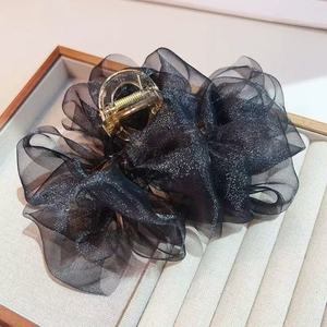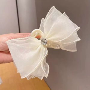 ホワイトメッシュパールリボンクリップ夏の新しい気質ハイエンドヘアピンヘアアクセサリー後頭部ヘアピン