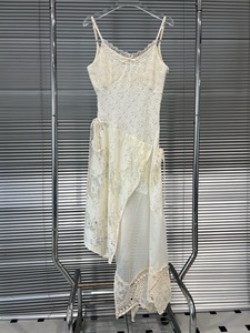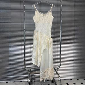 2025年新作夏スタイルセレブレースフックパターン斜めスカートウエストサスペンダースカートドレス