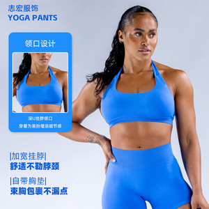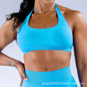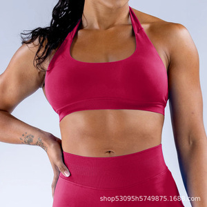 クロスボーダー高弾性カラースポーツスーツヨーロッパとアメリカのフィットネスヨガブラジャーナイロンホルターネックシームレス耐衝撃スポーツブラ