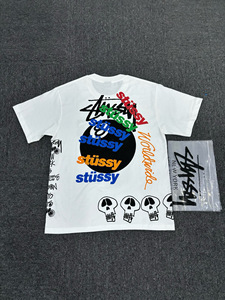 Stussy Stussy メンズ レディース 半袖 230g Tシャツ 夏 メンズ ルーズ ヘビーウェイト 高品質 Tシャツ スクリーン印刷