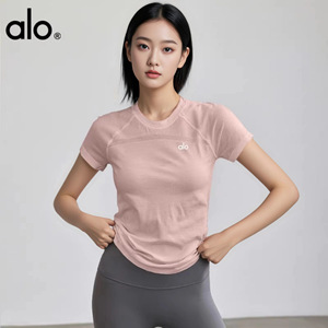 alo レディース Tシャツ 25 夏新作 ラウンドネック 速乾 プリント スリムフィット デイリー スプライシング スポーツ アウトドア レジャー 半袖