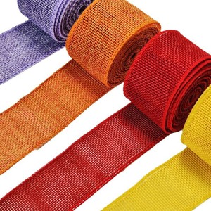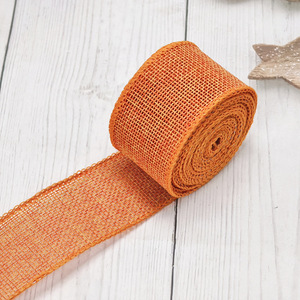 4cm宽彩色仿麻带铁丝边织带定型麻布卷手工DIY圣诞装饰丝带原麻