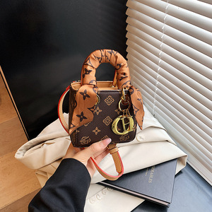 クロスボーダーレディースバッグ、新しいヨーロッパとアメリカのハイエンドミニハンドバッグ、西洋風のシルクスカーフ、親子クロスボディバッグ、口紅ヘッドフォンバッグ