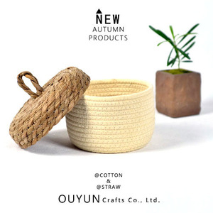 国境を越えたホットセール天然わら松ぼっくりデスクトップ収納バスケットインスタイル天然手織りわら綿ロープバスケット