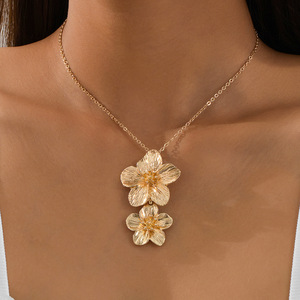 ヨーロッパとアメリカの国境を越えたベストセラーレトロなゴールデンフラワーネックレスハイエンドのファッショナブルな花びら鎖骨チェーンネックレス