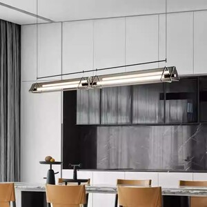 モダンでシンプルなレストランシャンデリアデザイナーバーテーブルティールームイタリアのミニマリストロングストリップハイエンドシャンデリア