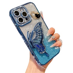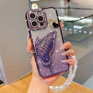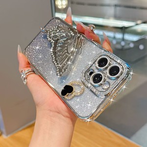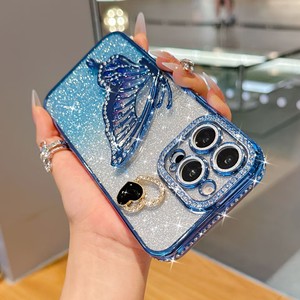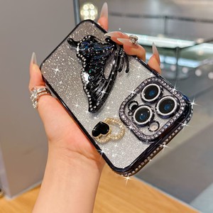 流砂蝶ホルダー Apple 16promax 携帯電話ケース iphone15 ラインストーングリッターソフトシェル 14 電気メッキに適しています