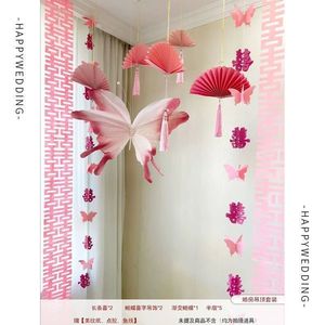 結婚式の部屋のレイアウトセット結婚式の装飾リビングルーム新郎の新しい家新婦の寝室結婚式のドレッシングガウン写真の背景蝶