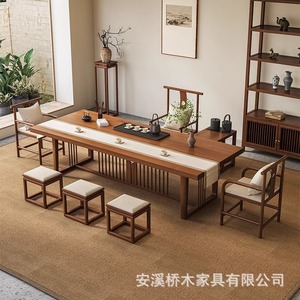 新中式無垢材大板茶卓椅子セット一体型家庭用茶台オフィス功夫茶台禅風