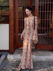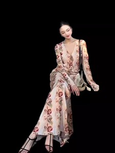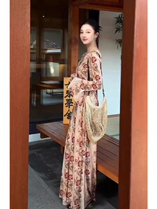 夏の起爆フランスの高級贅沢なリゾート風はとてもきれいで清新な気質で砕花ワンピースを見る女性4569