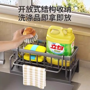台所の水たまりの池の洗浄精のスポンジの雑巾の物置棚の水たまりの神器の鋼のボールの皿洗いの池の収納棚