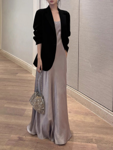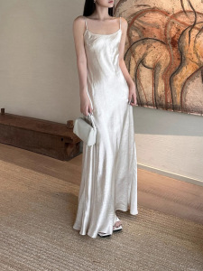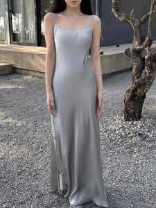 2025年小柄なデザインマーメイドアセテートサテンサスペンダードレススリムフィット気質スリムハイエンドロングスカート