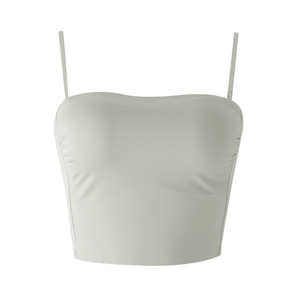女性用美背中サスペンダーブラ、涼しくシームレスなチューブトップ、大きな胸が小さく見える、胸パッド付き、露出防止、胸を包むブラ、夏用薄手