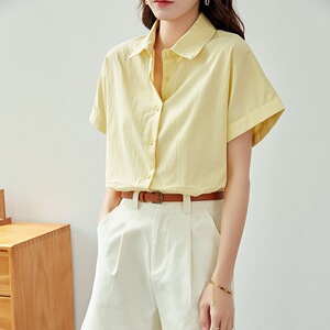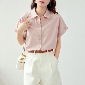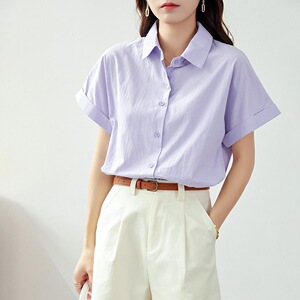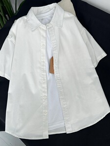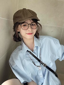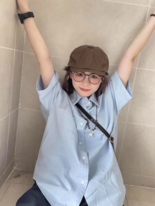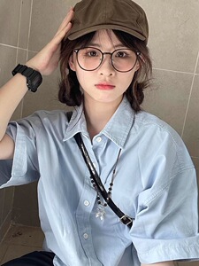 日本夏 2025 新しいブルー半袖シャツ女性のカジュアルルーズコットン多用途半袖トップイントレンド
