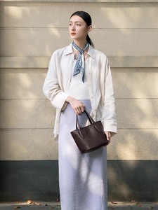 Qiu Zhen 植物タンニンなめし牛革マンマン野菜バスケットバッグポータブルクロスボディ大容量ハイエンド通勤本革バケットバッグ女性用