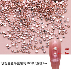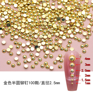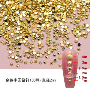 金属ネイルアクセサリー合金半円リベット銀色光沢鋼珠金色平底中実半球爪アクセサリー