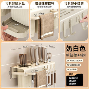 ナイフホルダーと箸入れ一体型キッチン多機能穴あけ不要収納ラック、包丁収納ラック、包丁箸入れ