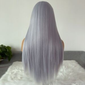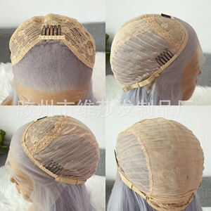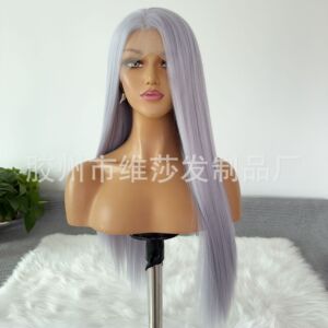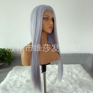 外国貿易ウィッグ グレー パープル ロング ストレート ヘア フルヘッド カバー 女性用 フリーパーティション ハンドフック 13x4 レース 化学繊維 ユニバーサル cos