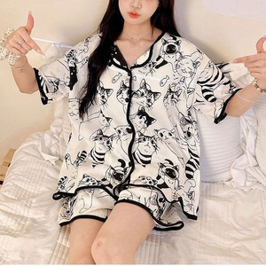 胸パッド付きミルクシルクパジャマレディースカーディガン夏薄手半袖ショーツ甘くてかわいいゆったりと家で着用できます